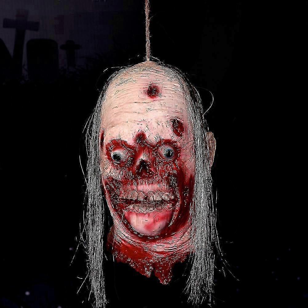 Scary Hanging Severed Head Halloween Decoration Latex Simulation Corpse Head Horror Zombie Head Props Haunted House Party Decor