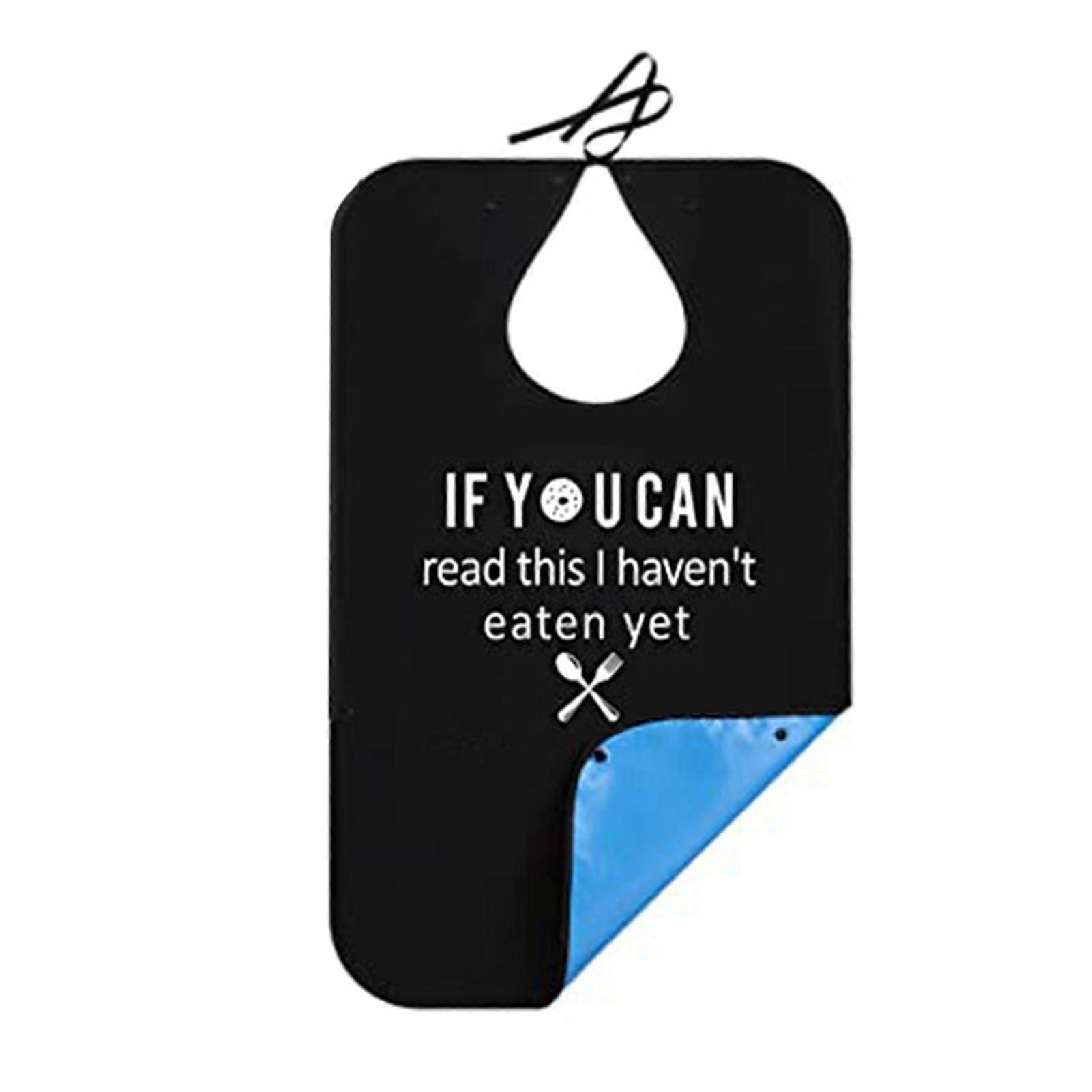 Waterproof Adult Bibs for Men with Crumb Catcher Funny Text Black Washable Lightweight Mealtime Clothing Protector