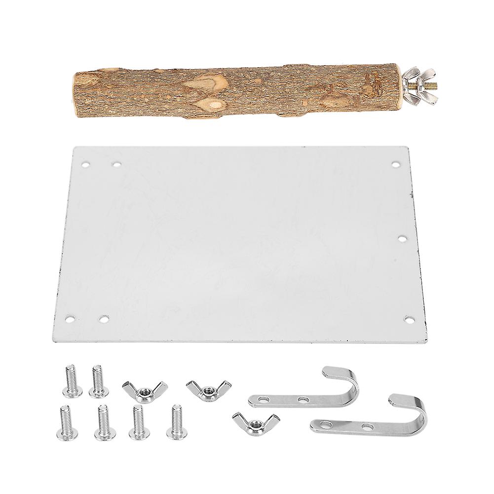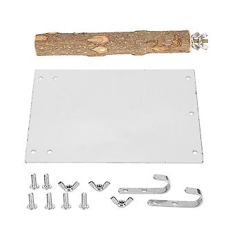 Stainless Steel Medium Small Parrots Mirror with Wooden Standing Rod Bird Cage Accessory
