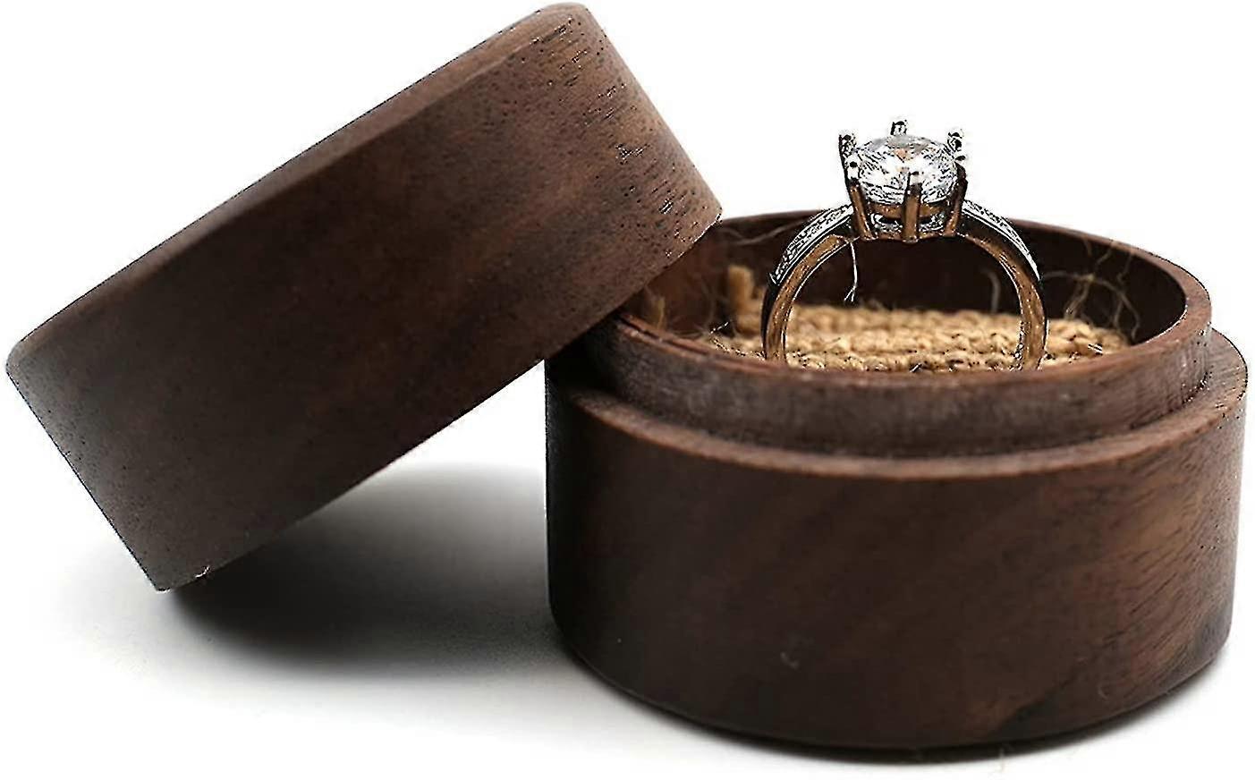 Jewelry Ring Box, Small Earring Display Gift Box, Wooden Keepsake Box, Round Wooden Ring Boxes With Detachable Lid For Proposal, Engagement, Birthday