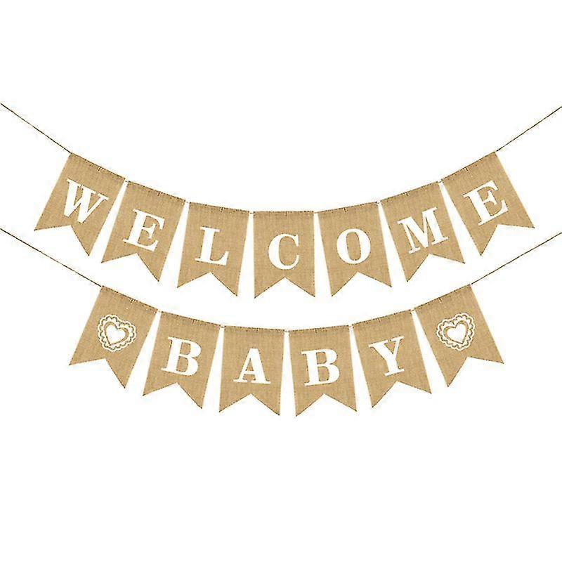 Welcome Baby Letters Bunting Banner Decoration Heart Shape Linen Burlap Banner Swallowtail Pull Flag Party Supplies For Birthday