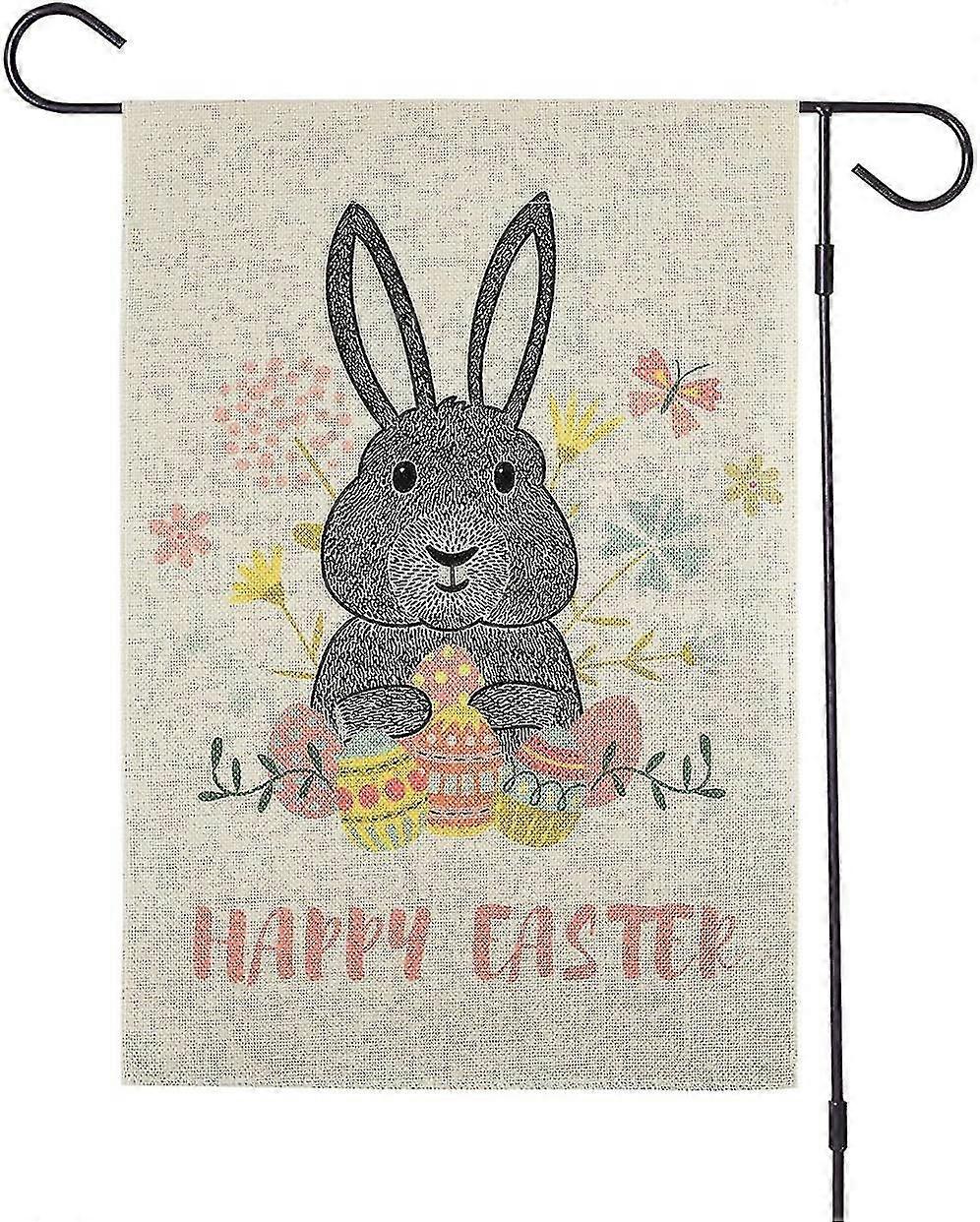 Welcome Easter Garden Flag Double Sided Happy Easter Day Burlap Bunny Garden Flag Easter Cute Bunny Rabbit For Outdoor Yard Home & Spring Easter Decor