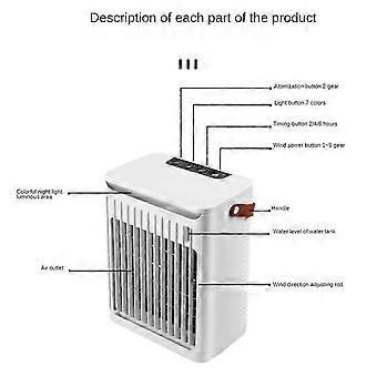 Air Cooler Humidifier with 5 Speeds 7 Color Light Personal Air Conditioner Fan for Room Office
