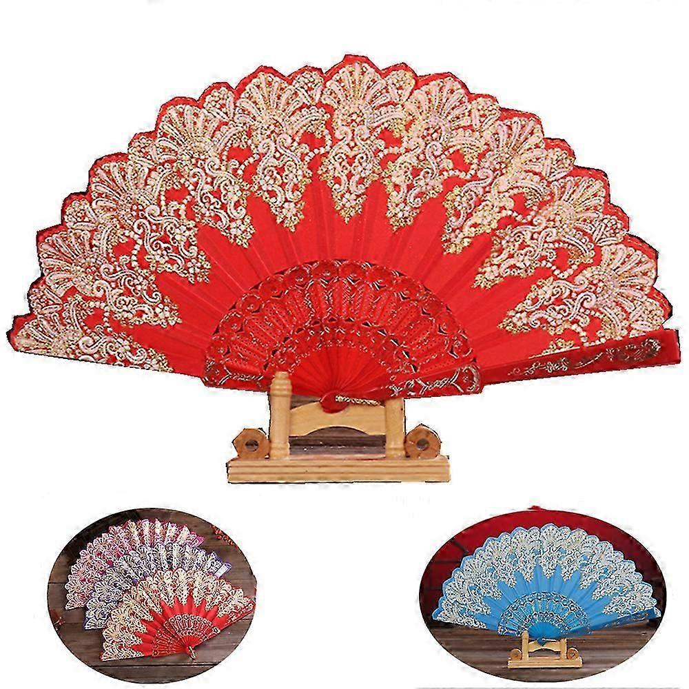 Retro Fan-shaped Folding Fan Elegantly Embellished With Gold Powder Chinese Art Craft Fan Thickened And Sturdy Small Fan