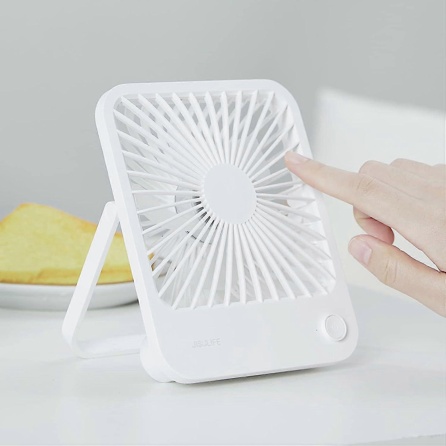 JISULIFE Small Desk Fan Battery Operated Small Fan180 Foldable Portable Fan, 4 Speeds Adjustable Ultra Quiet for Home Office Travel Outdoor-White