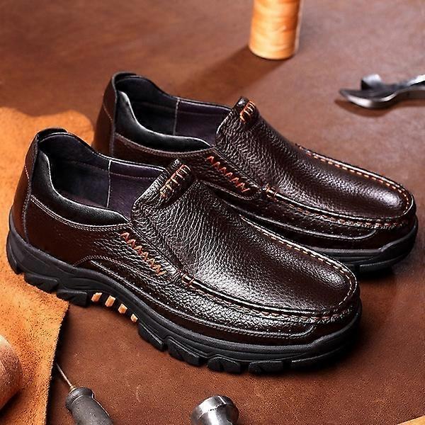 Comfy Genuine Cow Leather Casual Men Shoes Seniors Elderly Shoes Business Soft Loafers