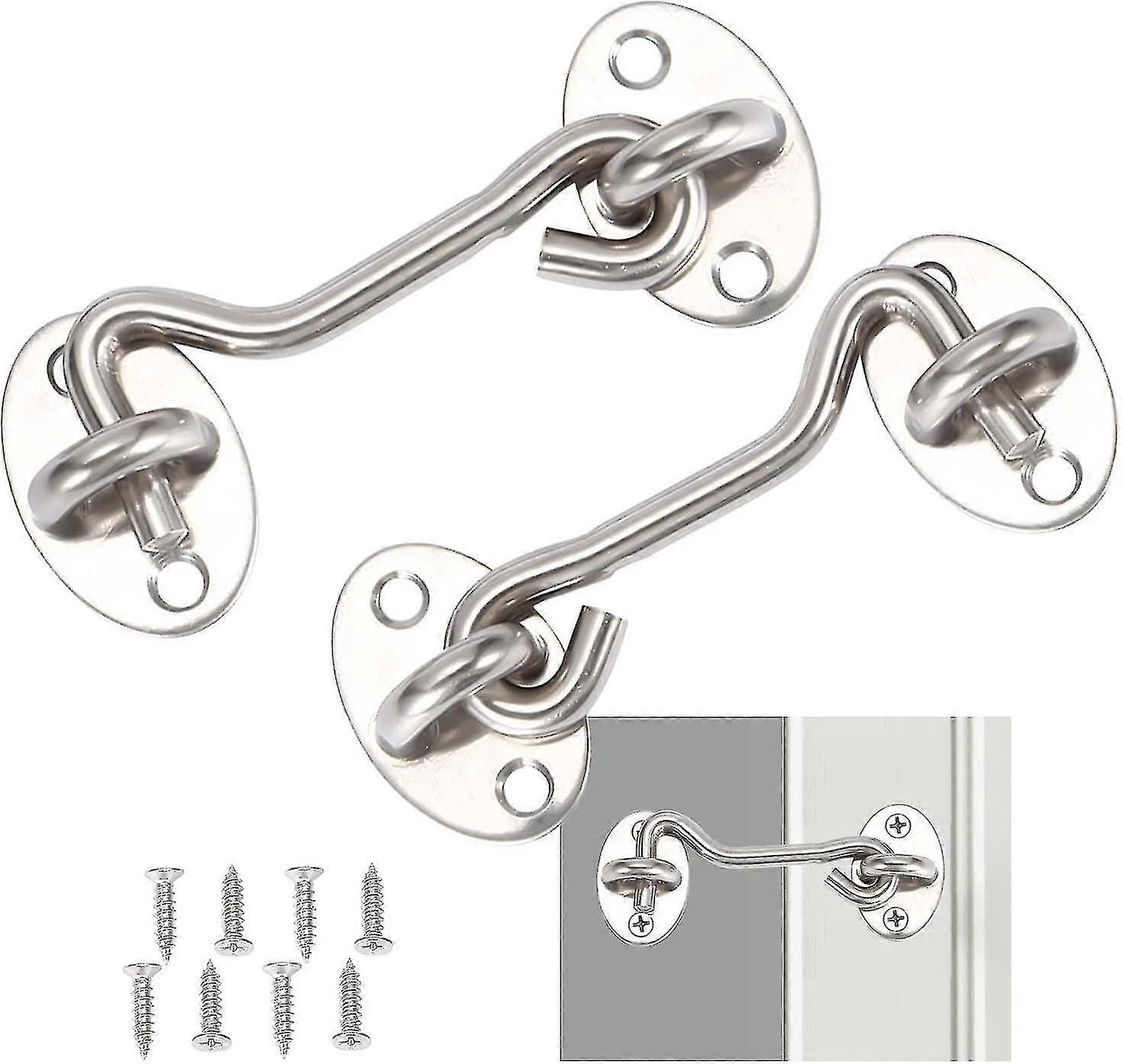 Cabin Hook Door Latch, Stainless Steel, Silver, 7.6cm, with Mounting Screws, 2-Pack