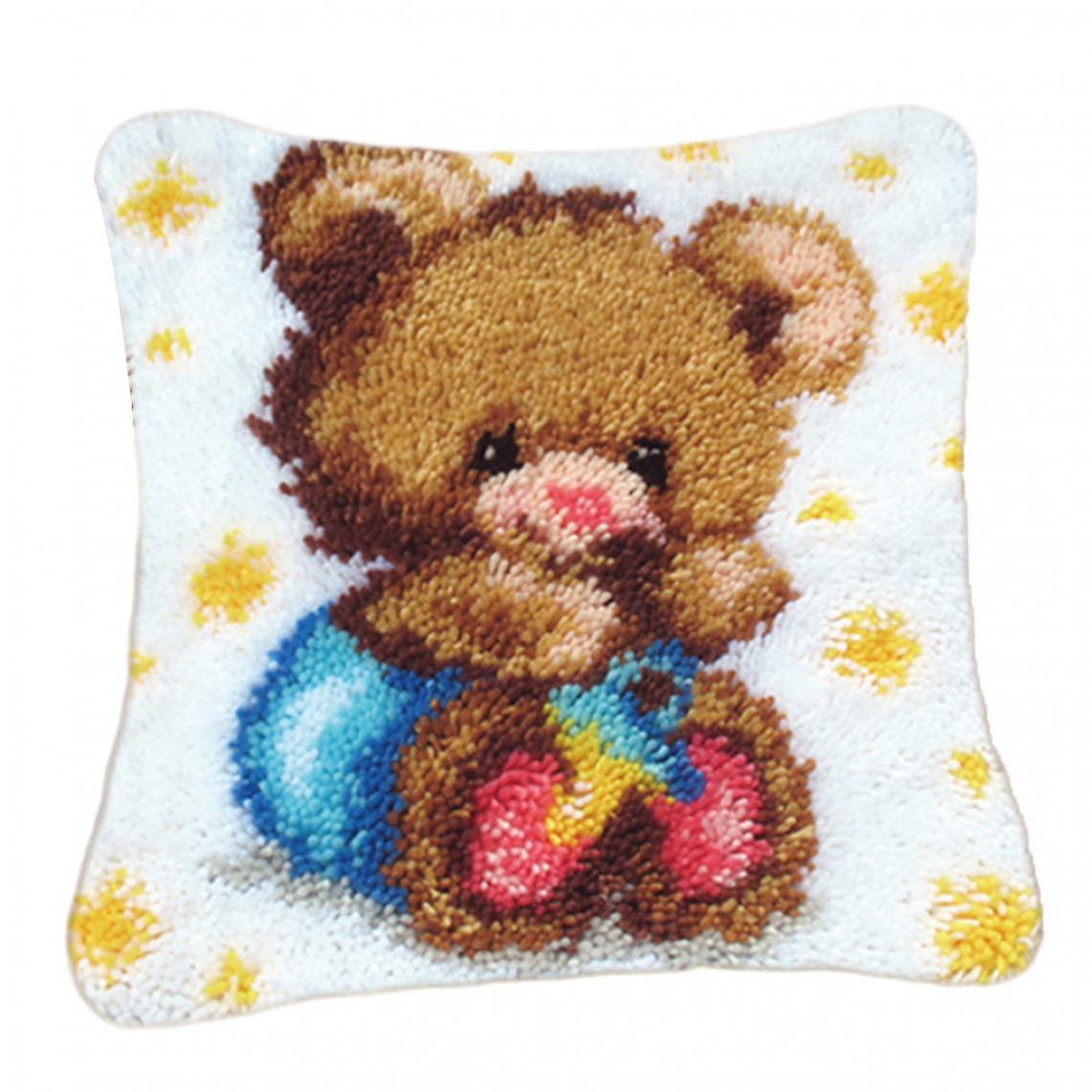 Latch Hook Rug Diy Kit Embroidery Sewing Cushion Pillow Mat Pink Bear