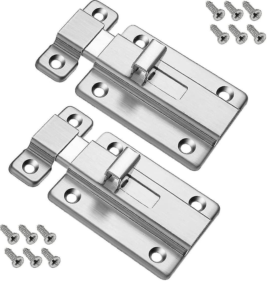 Door Bolts, 2 Pcs Stainless Steel Door Bolt, Security Bolt Lock With 12 Screws For Flush Doors Bedro