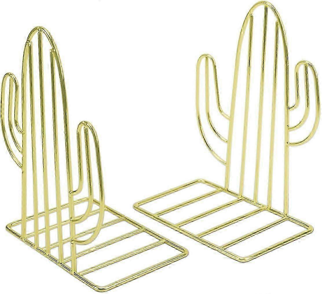 Metal Bookends, 1 Pair of Heavy Duty Shelving Bookshelf Bookcase and Desk Organizer Cactus Shape Book Toppers for Gift Book Binder & Dividers, Gold