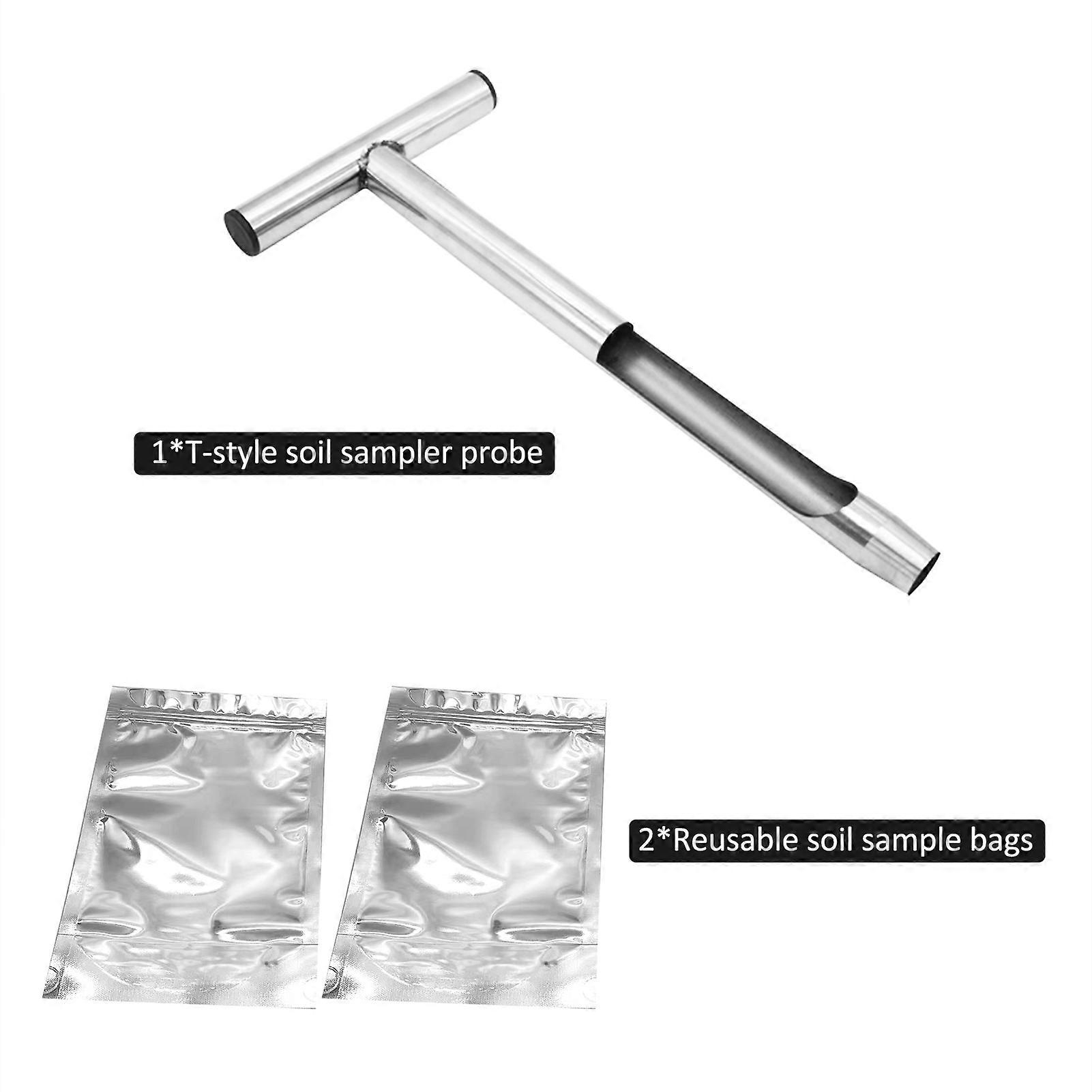 12.8 Inch Soil Sampler Probe with T-Type Handle, Steel Soil Sampling Tool for Garden Lawn Farm Golf Field Forestry, Includes 2 Sample Bags