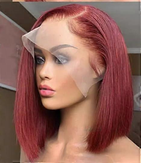 Straight Bob Lace Front Wig Glueless Remy Human Hair Pre Plucked Hairline Short Bob 99J 13x4 Frontal 14 Inch 150% Density