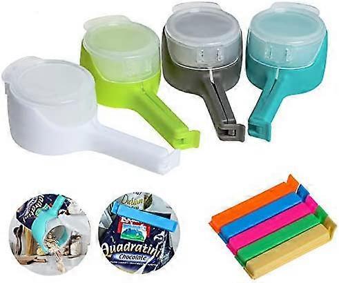 Food Storage Sealing Clips- 9 Pack Bag Clips for Food,4 PCS Plastic Cap Sealer Clips & 5 PCS Bag Sealing Clips, Great for Kitchen Food Storage and Org