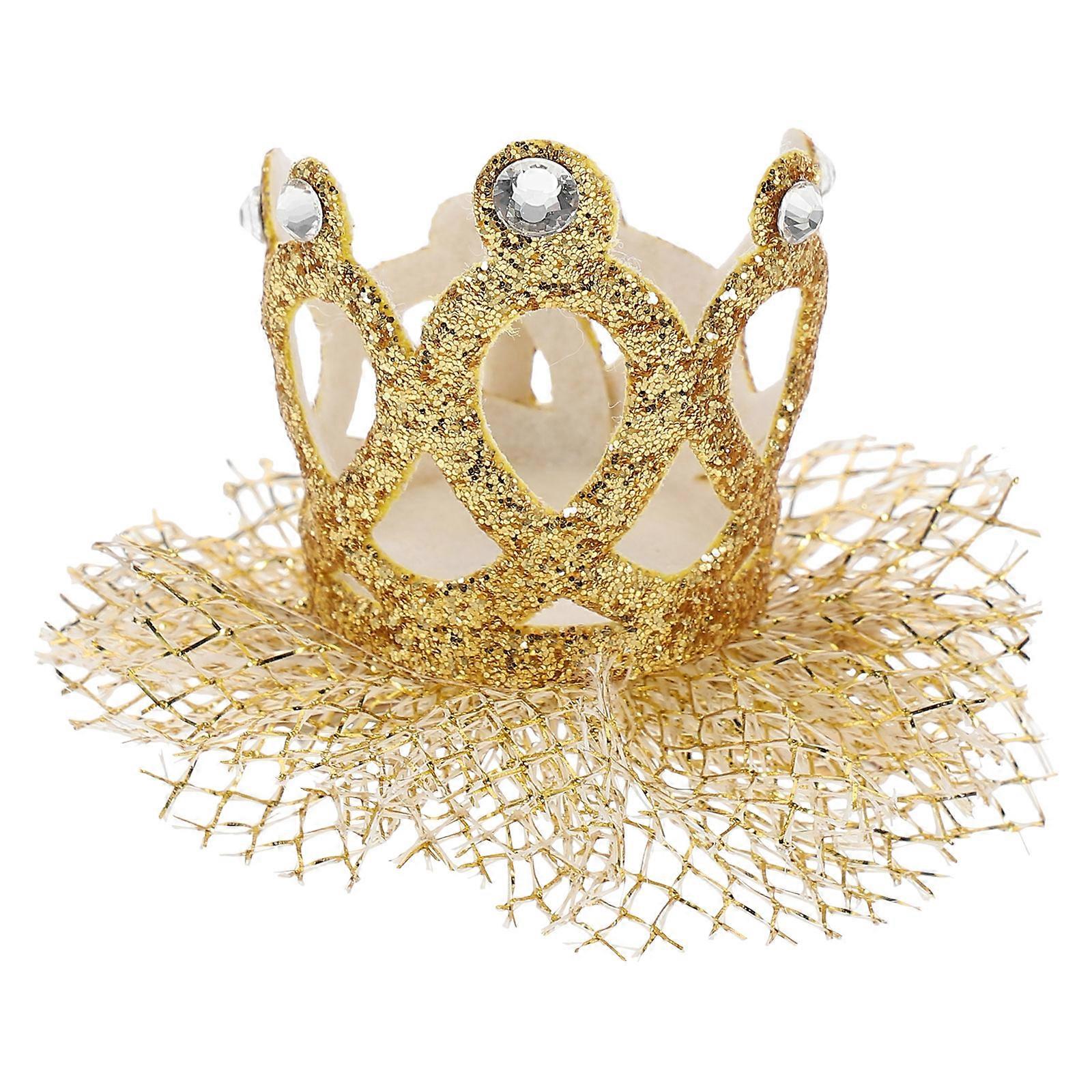 Golden Tulle Crown Hair Clip for Kids Lightweight and for Parties and Photography 1Pc