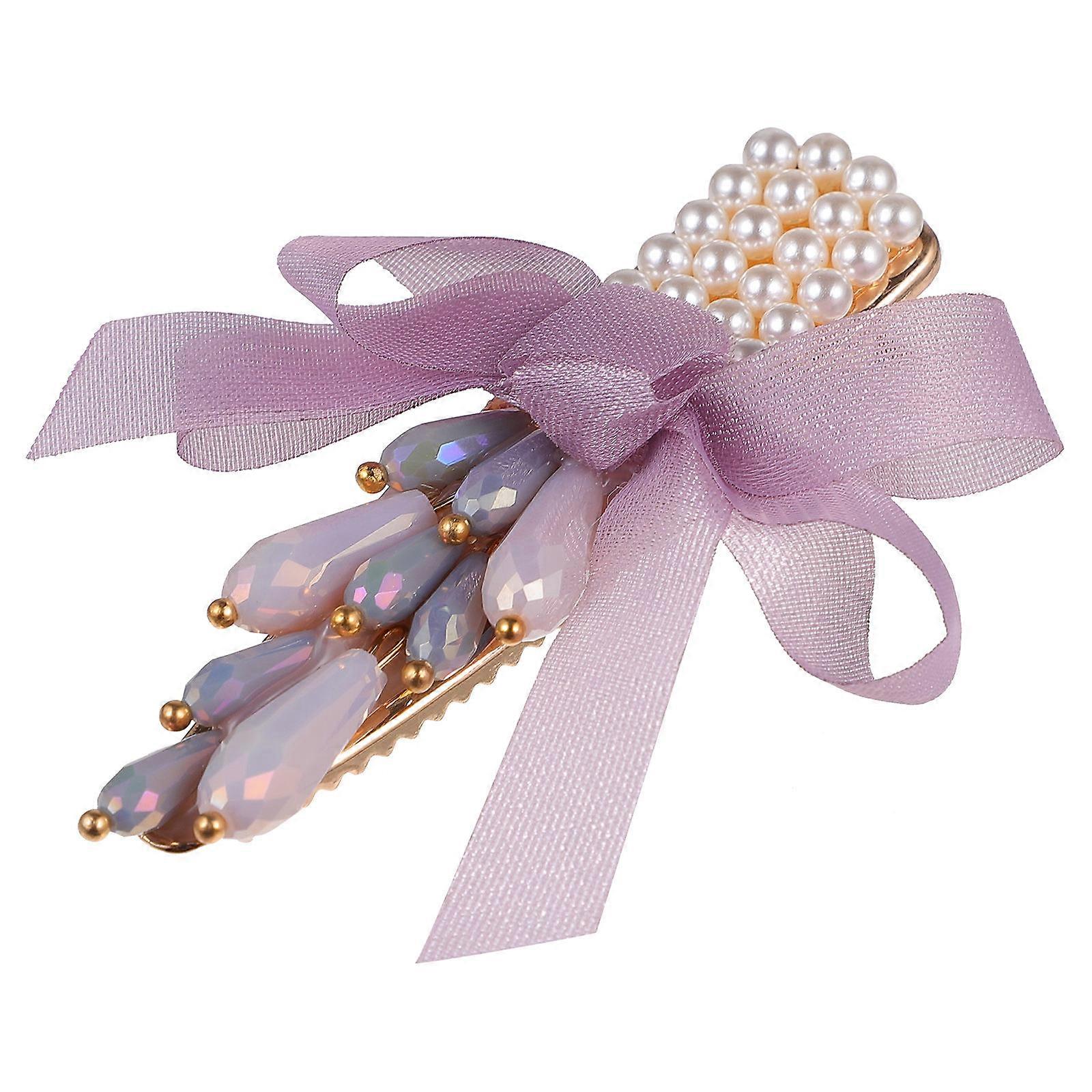 Purple Alloy Hair Clip with Rhinestone and Bowknot for Decoration Elegant and Durable