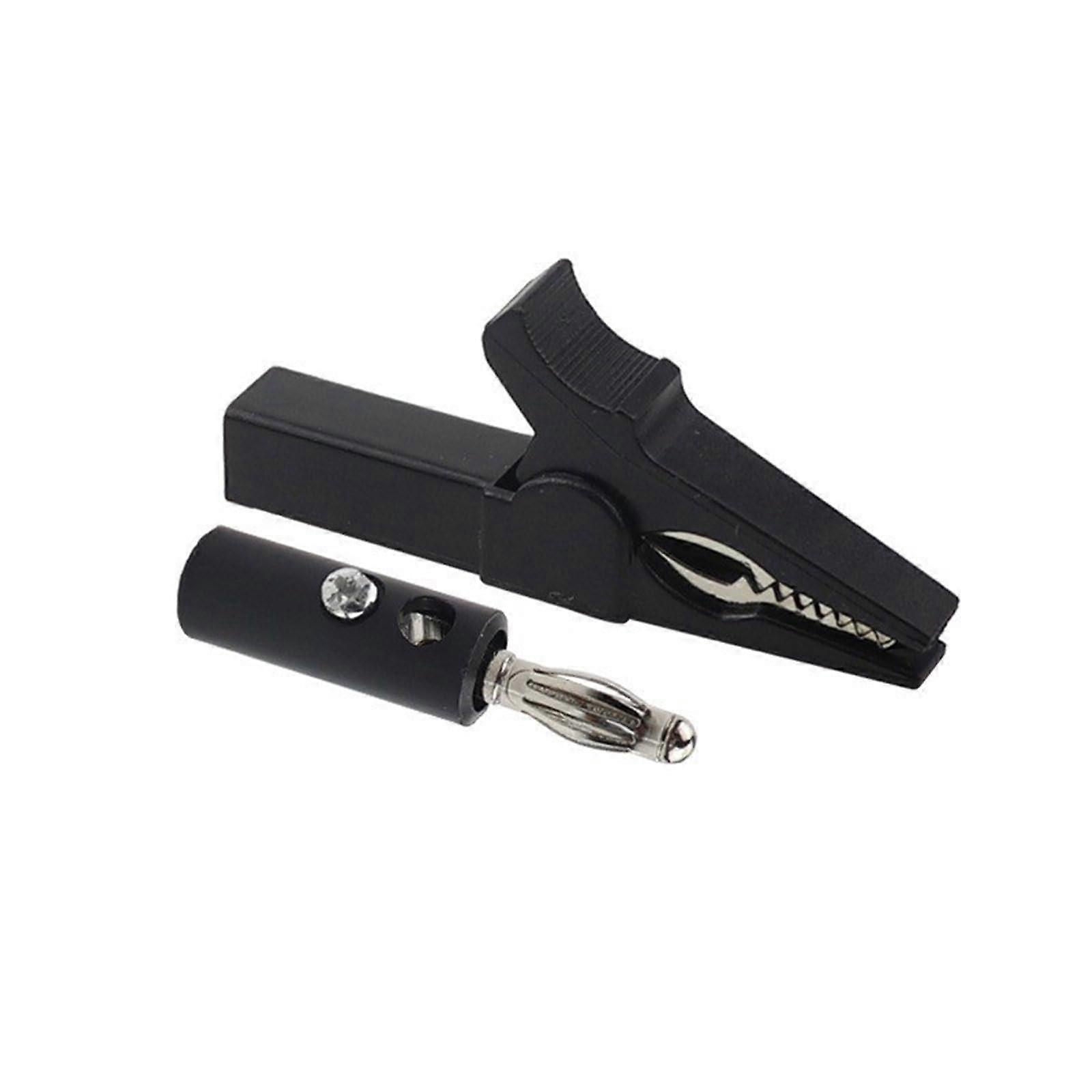 Isolated electrical clip, 55 mm spring clip, and banana plug test probes with 4 mm banana plug cable clip, permanently attached.