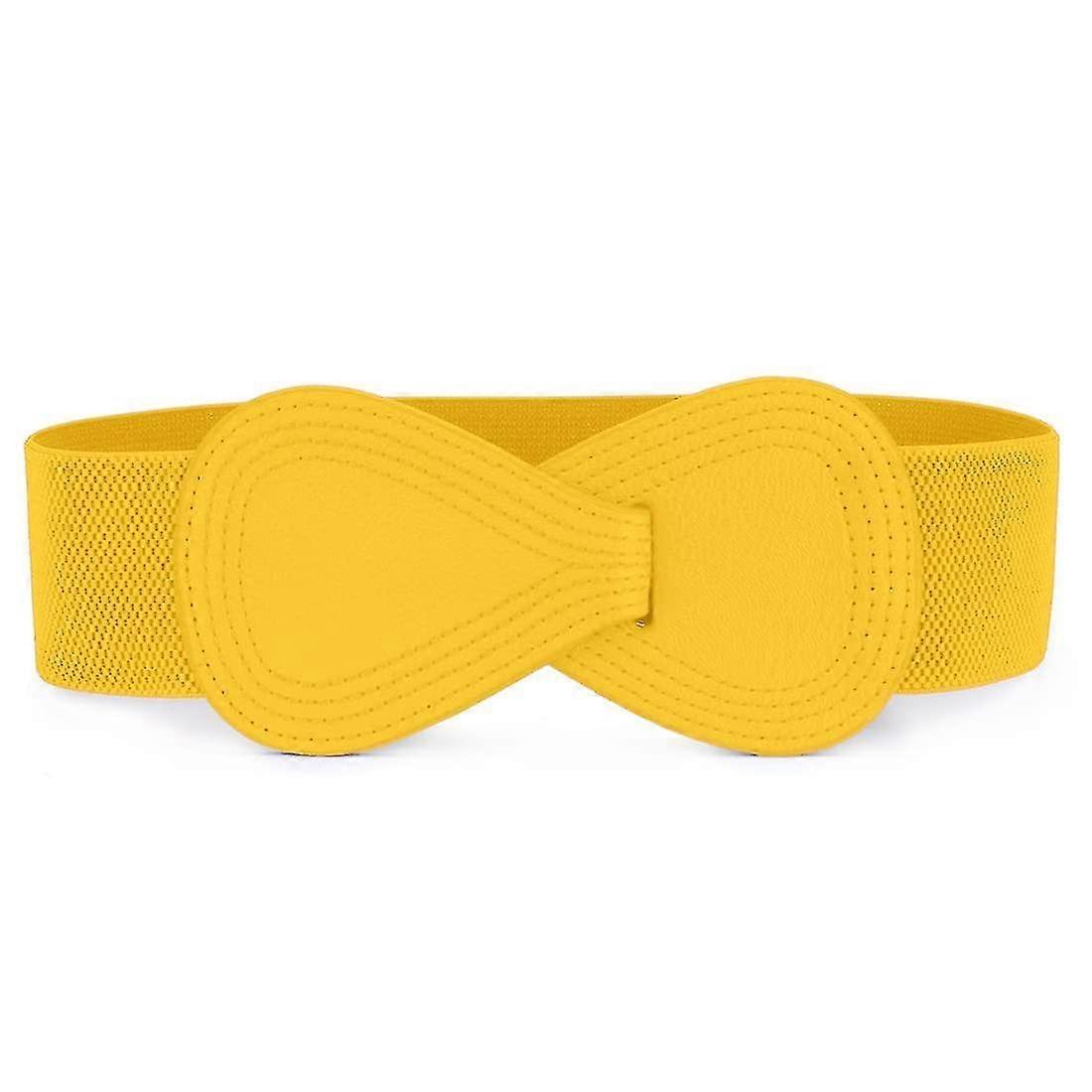 Interlock Buckle 8-shaped Faux Leather Elastic Belt Cinch Waistband For Lady-yellow