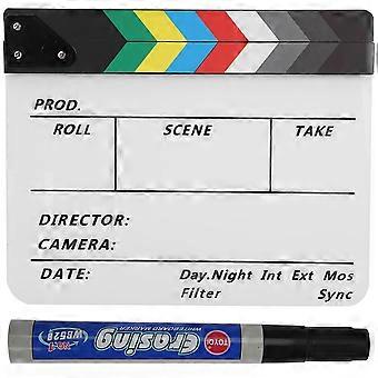 Acrylic Director Scene Clapperboard TV Movie Action Board Film Cut Prop with Pen (Color/White)