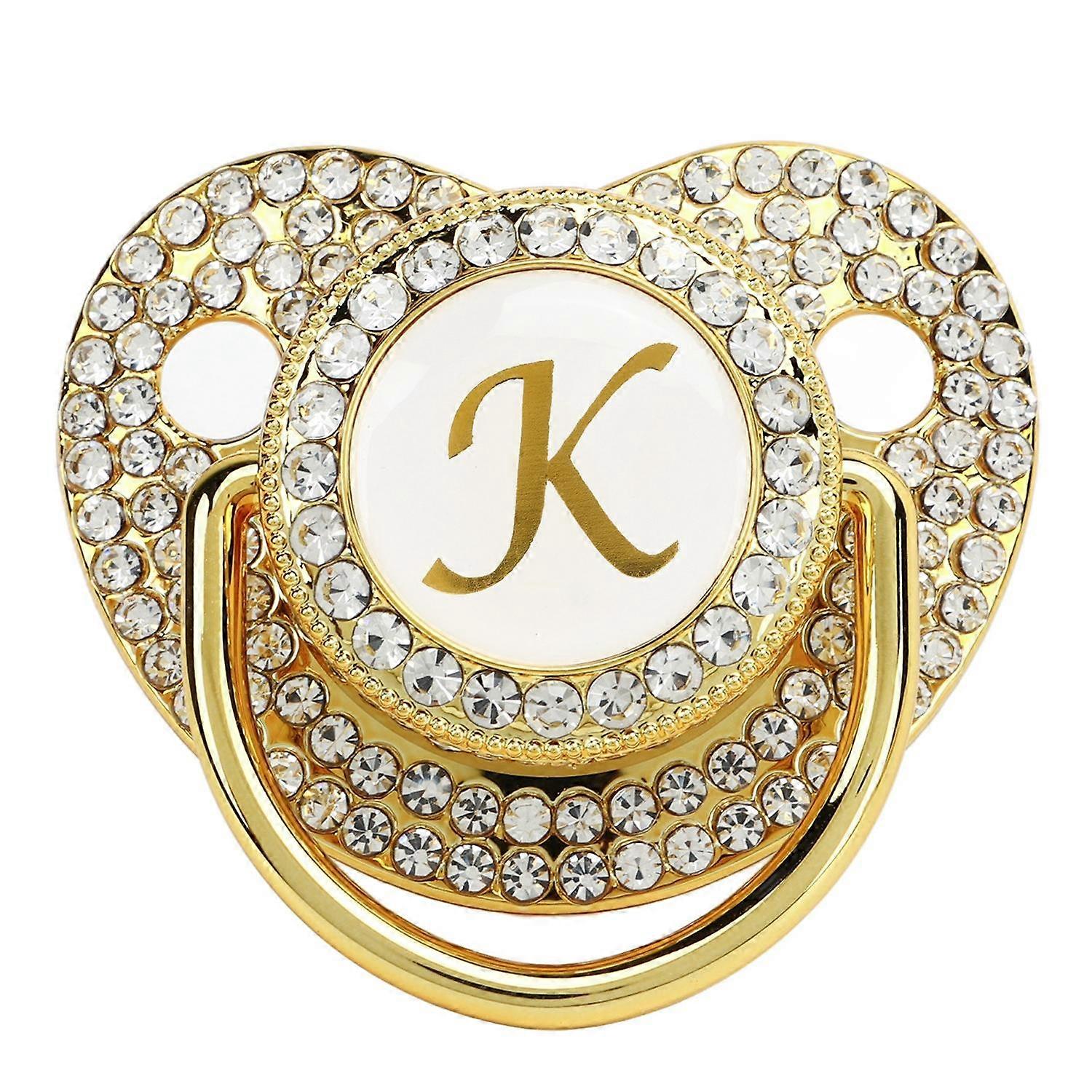 Baby Bling Pacifier Golden Pacifier Clip Letter Curved Pacifier with Dust Cover for Newborn Letter K