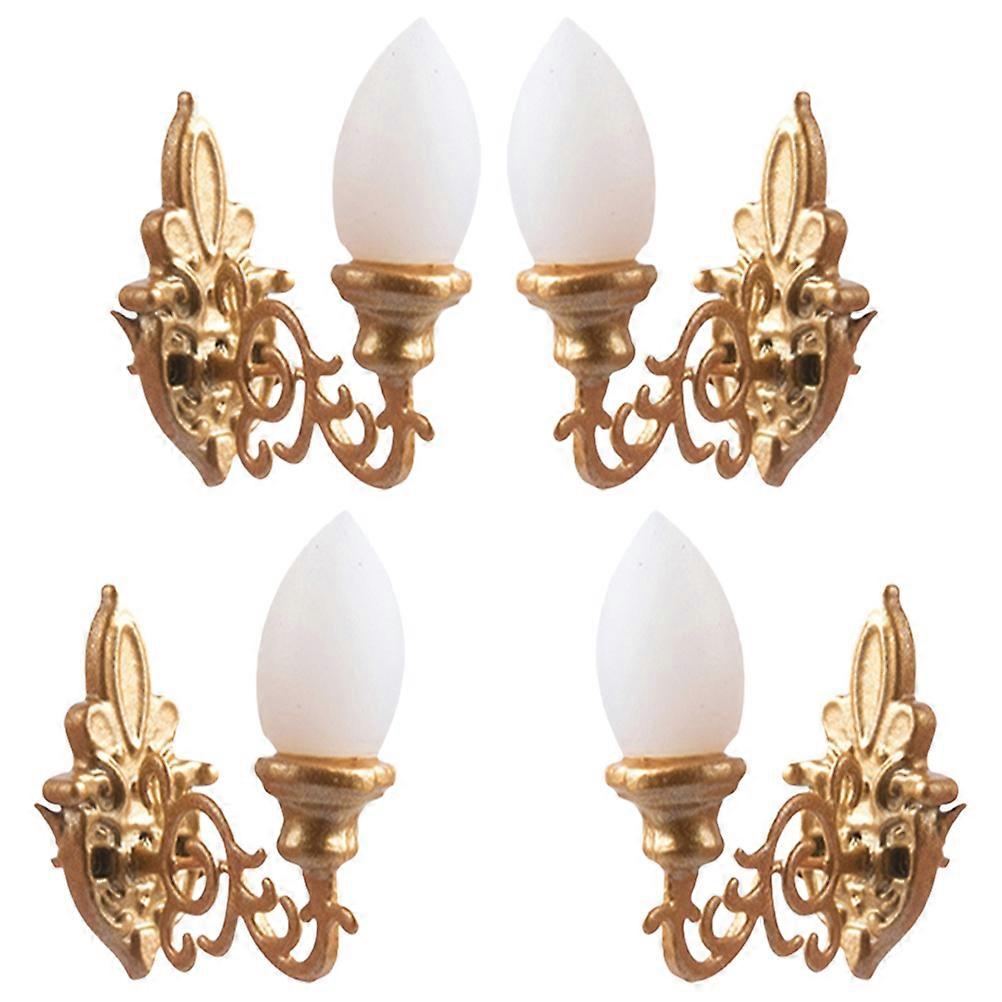 Mini Luminous Wall Lamp Mini House Design DIY Materials 1/87 Scale Golden Scene Decoration 4Pcs