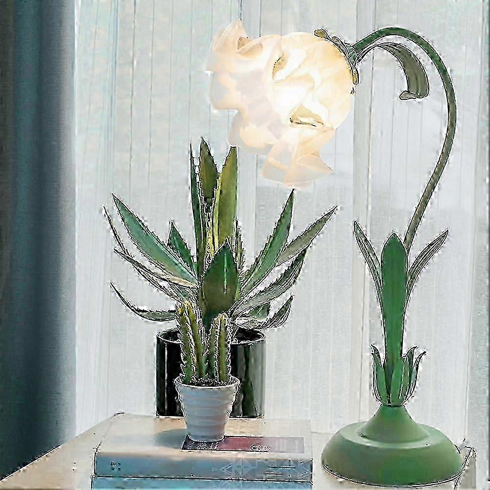 Flower Lamp, 3 Color Changing Night Lamps, Vintage Table Lamp with Floral Glass Shade, Metal Leaf, LED Desk Lamp for Living Room, Bedroom, Bedside