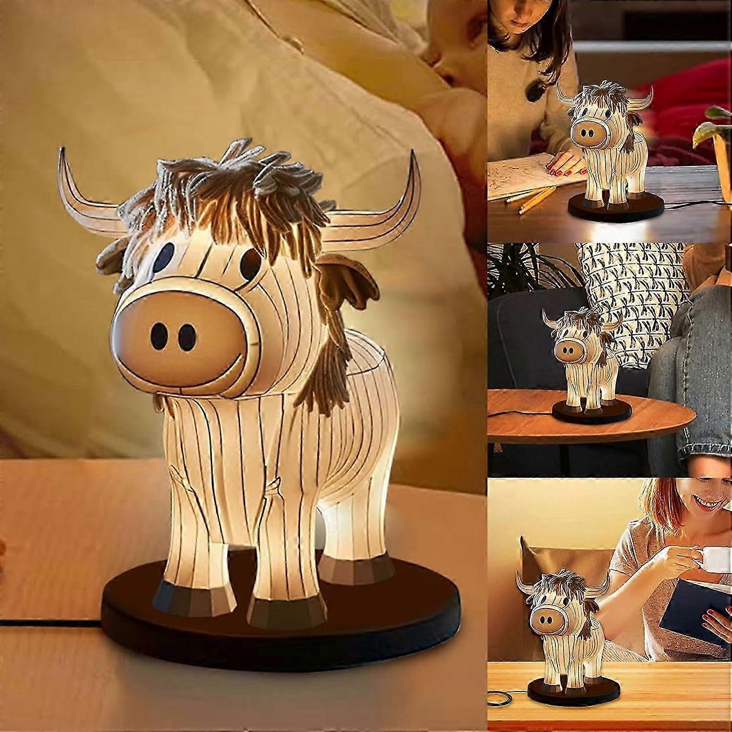Cow Yak Table Lamp,Small Animal Night Light,Highland Cow Table Lamp with USB,Portable Table Lamp Pai