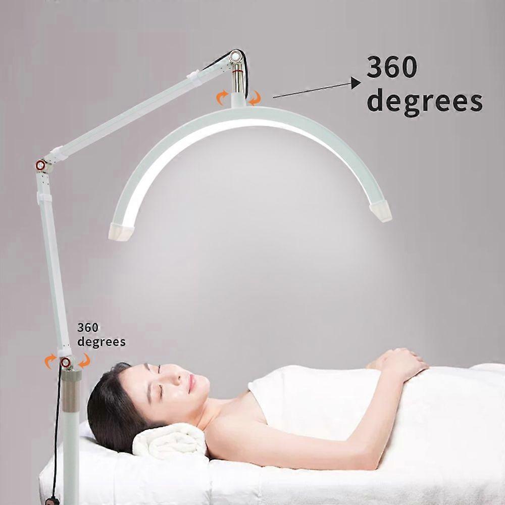 Feature:1. Half-moon Floor Fill LightSpecial half-moon shape design, with 180pcs bi-color temperature lamp beads, 20W power output and 90+ high color rendering, the floor beauty lamp is suitable for desktop vlog, beauty salon live streaming, beauty project, etc.2. Bi-Color Temperature \u0026 DimmableFeaturing 3 lighting modes with 3000K-6000K adjustable color temperature, the floor LED video light provides you with soft warm light or cold light, and its adjustable brightness can meet your needs of light in different usage conditions.3. Flexible Rotation DesignThe lamp head can be 360 rotated freely, you can adjust the lighting angle easily, no any block to your video recording, very flexible to use.4. Adjustable Floor Light StandThe metal light stand with 54cm-100.5cm/21.25-39.57in adjustable height the 26cm/10.23in large metal base enables you to place the fill light on floor for stable and convenient usage.5. With Phone HolderComes with an adjustable and rotatable phone holder that is compatible with most smartphones on the market, you can install your phone to the light easily for video recording.Specification:Features:Half-moon Floor Fill LightSpecial half-moon shape design, with 180pcs bi-color temperature lamp beads, 20W power output and 90+ high color rendering, the floor beauty lamp is suitable for desktop vlog, beauty salon live streaming, beauty project, etc.Bi-Color Temperature & DimmableFeaturing 3 lighting modes with 3000K-6000K adjustable color temperature, the floor LED video light provides you with soft warm light or cold light, and its adjustable brightness can meet your needs of light in different usage conditions.Flexible Rotation DesignThe lamp head can be 360° rotated freely, you can adjust the lighting angle easily, no any block to your video recording, very flexible to use.Adjustable Floor Light StandThe metal light stand with 54cm-100.5cm/21.25-39.57in adjustable height the 26cm/10.23in large metal base enables you to place the fill light on floor for stable and convenient usage.With Phone HolderComes with an adjustable and rotatable phone holder that is compatible with most smartphones on the market, you can install your phone to the light easily for video recording.Specifications:Material: Aluminum Alloy + ABSPower: 20WLED Beads: 180pcsColor Temperature: 3000K-6000KBrightness: adjustableCRI: >90Light Stand Height: 54cm-100.5cm/21.25-39.57inInput Voltage: 110V-240V 50Hz/60HzNet Weight: 2.4kg/ 5.3lbsPacking List:1 * LED Light1 * Foldable Arm1 * Light Stand1 * Light Base1 * Phone Holder1 * Power Adapter2 * BandagePackage List:1 * LED Light1 * Foldable Arm1 * Light Stand1 * Light Base1 * Phone Holder1 * Power Adapter2 * Bandage