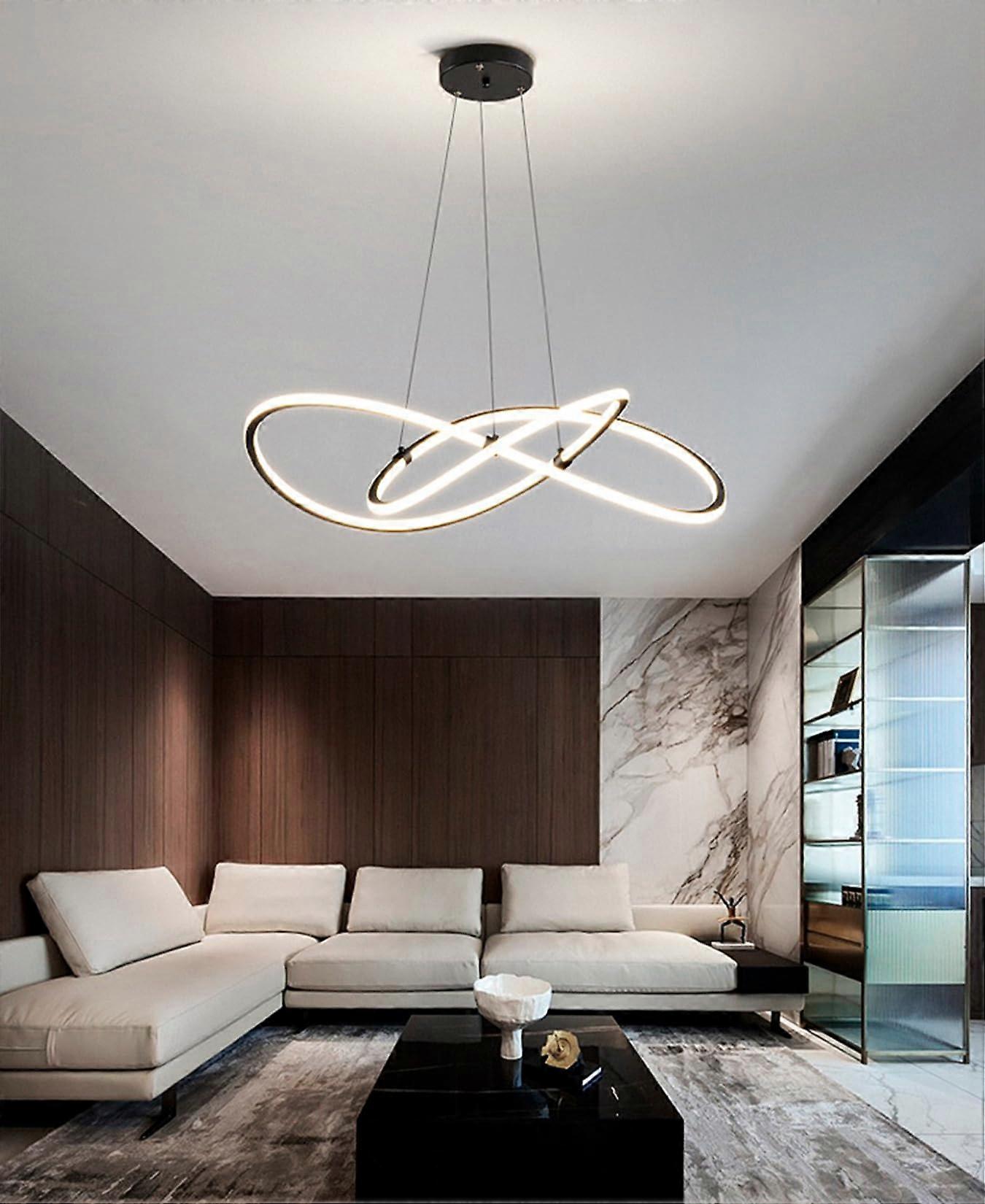 LED Pendant Light, Adjustable Height Chandelier, Modern Dining Table Pendant Lamp, Dimmable Black RingShaped Chandelier for Living Room.