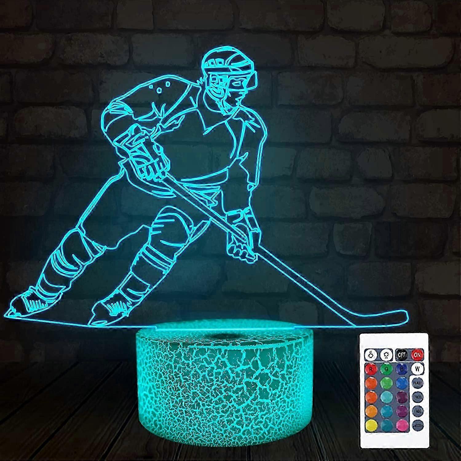 3D Ice Hockey Lamp, 16-Color Changing Night Light with Remote Control, Creative Bedroom Decor for Sports Fans