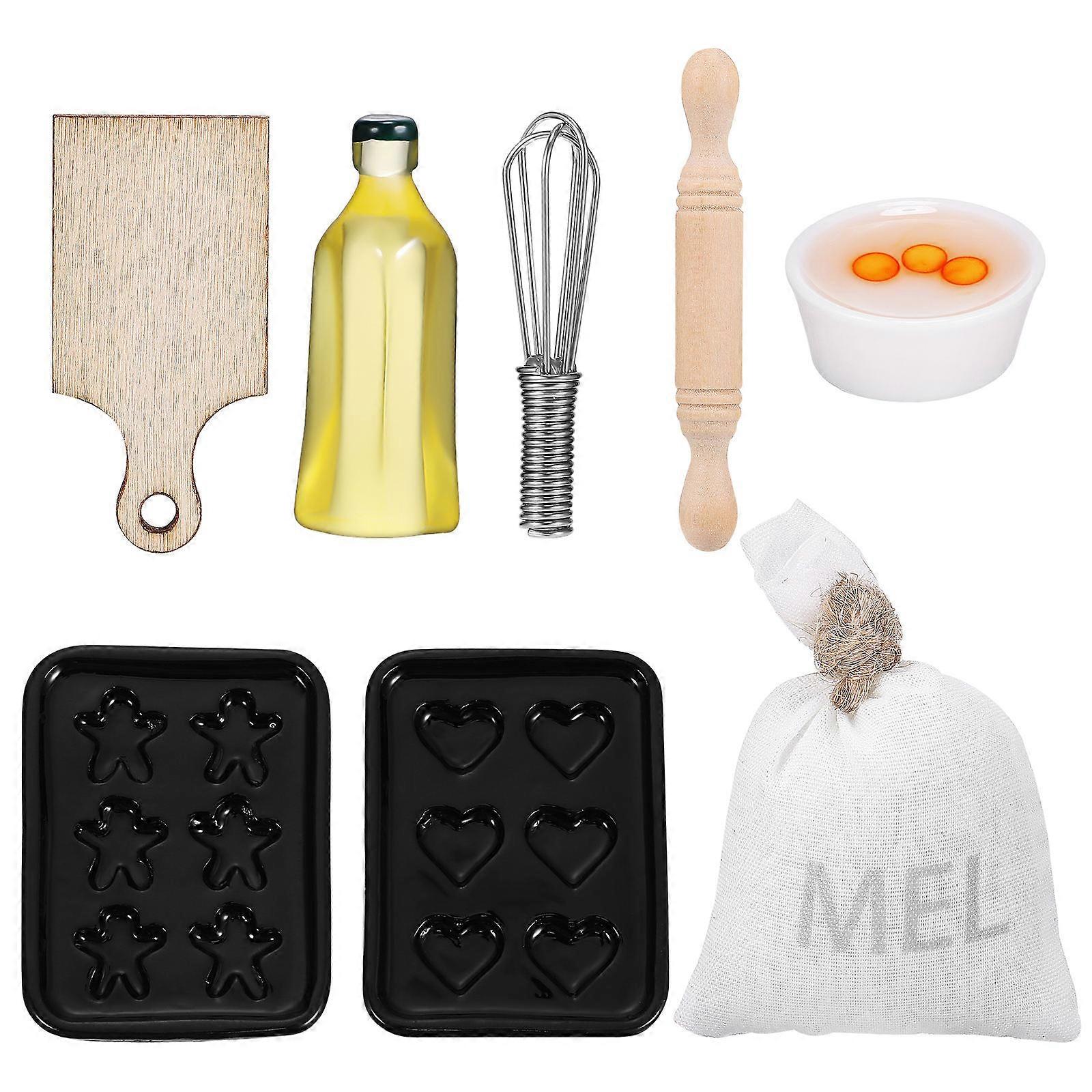 Miniature Kitchen Play Set Miniature Baking Tools Dollhouse Kitchen Decorations Assorted Color Plastic Wood Decorative 1Set