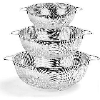 Colander Set of 3, Stainless Steel Colanders with Handle, Metal Colander Perforated Strainer for Kitchen Pasta/Fruit - Dishwasher Safe- 16/22/28 cm