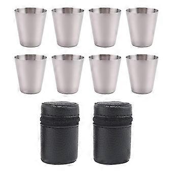 Polished 30Ml Mini Stainless Steel Shot Glass Cup Drinking Wine Glasses with Leather Cover Bag for H