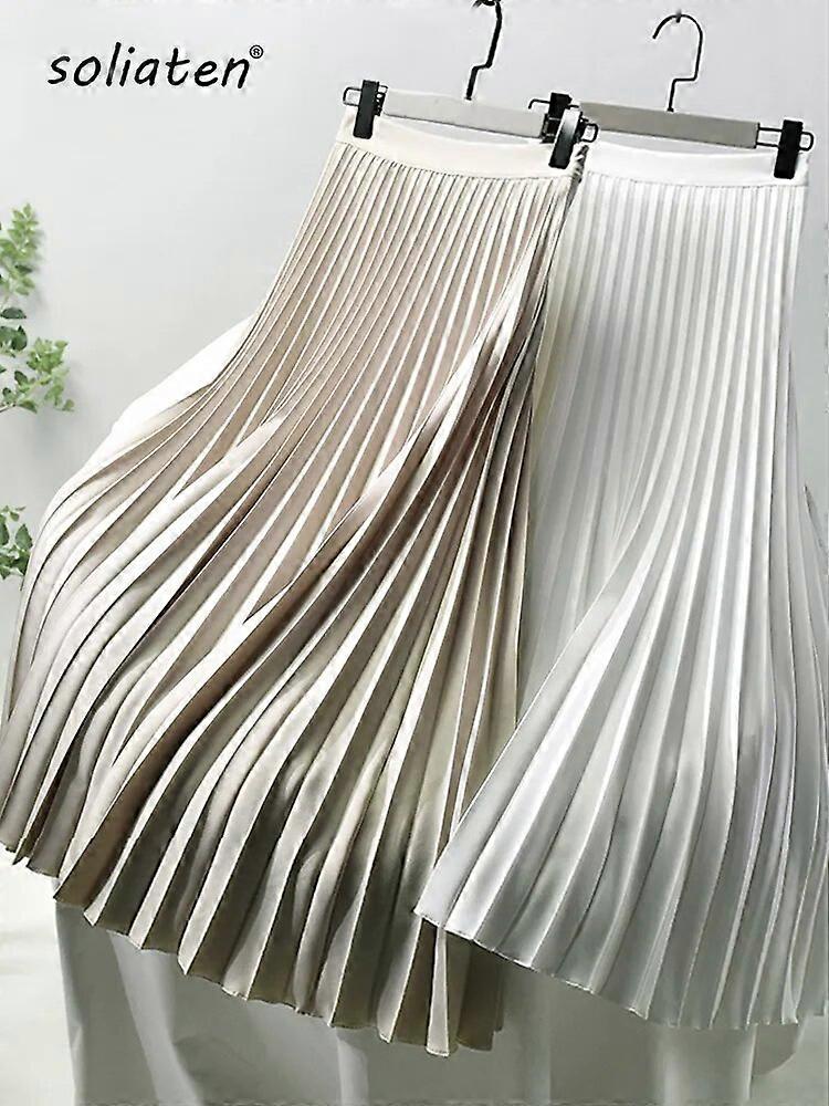 Brand Designer Women Spring Autumn Elegant Chic Solid Pleated Skirt High Waist Luxury Fashion With Elastic Female C-035