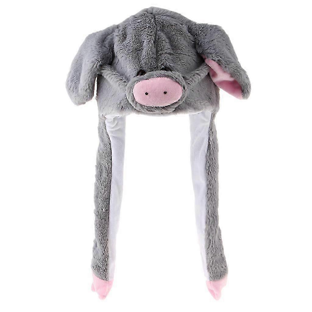 Funny Plush Piggy Hat Movable Ears Animal Pig Headwear with Pressing
