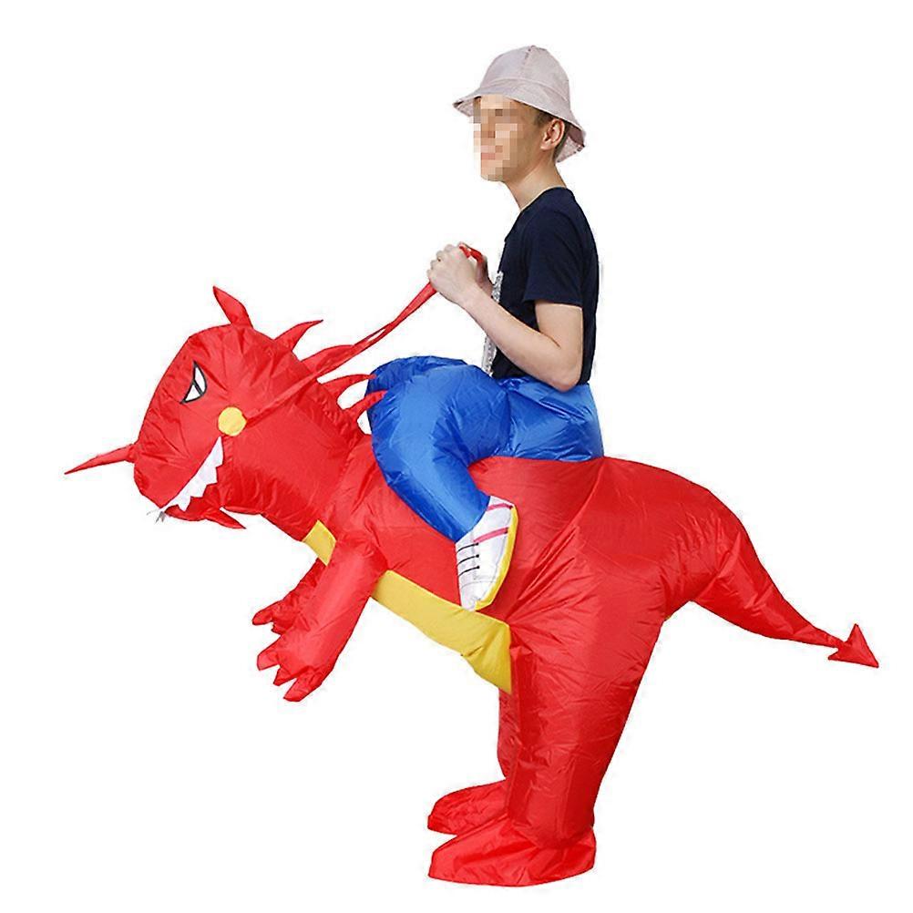 Funny Dinosaur Riding Outfit Inflatable Costume For Adult Halloween Celebrations 1 Set Red Color Entertainment