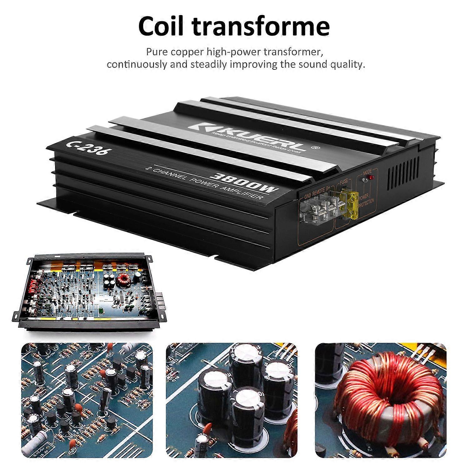 2-Channel Car Audio Amplifier 3800W High-Power Amp 12.0V Ultra-Thin Two-Way Power Amplifier Class A/
