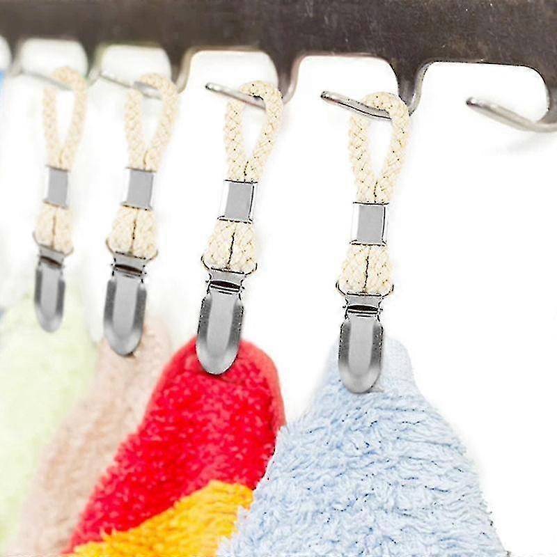 Braided Cotton Loop Towel Clip With Metal Clamp Multipurpose Cloth Hanger For Home Bathroom Kitchen