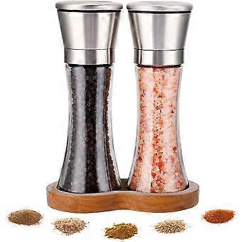 Salt And Pepper Mills With Beech Stand- Set Of Grinders With Adjustable