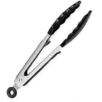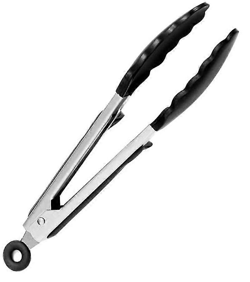 Kitchen Tongs Bbq Tongs Stainless Steel Toaster Tongs And Silicone Handle 9" Cooking Tongs With Bracket And Hanging Hole Black Grill