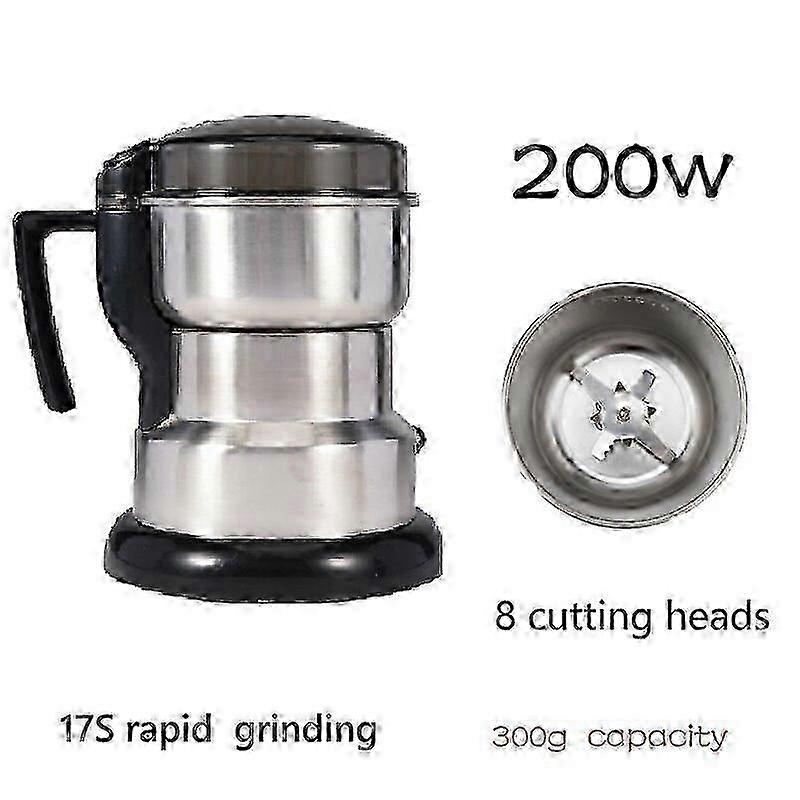 High Power Electric Coffee Grinder : This coffee grinder is powered by electricity, making it easy to use and efficient. Multifunctional Home Coffee Grinder : This coffee grinder can be used for grinding various types of beans, nuts, and spices, making it a versatile addition to any kitchen. Stainless Steel Housing Material : The coffee grinder's housing is made of stainless steel, ensuring durability and longevity. 4-10 Grinding Levels : With 4-10 grinding levels, this coffee grinder can produce a range of consistencies, allowing for customized brewing options. 30 seconds quick powder, challenge 60 mesh screen Grinders for all materials: coffee beans, grains, pills, spices, herbs Choose different materials: food grade 304 Hidden power cord and widened base more safe Let go and stop, customize time Exclusive design portable handle 150W-400W power, more than 35,000 rpm motor speed Notice: *Images on this page are for illustration only and the design of theactualproduct may differ. **All data on this page regarding charging and battery life and Usage timeis obtainedfrom laboratories, and may not reflect the actual product.Actual usage results may vary due to environmental factors *** The product cannot be used continuously for 15 minutes, otherwise there is a risk of overheating and short circuit