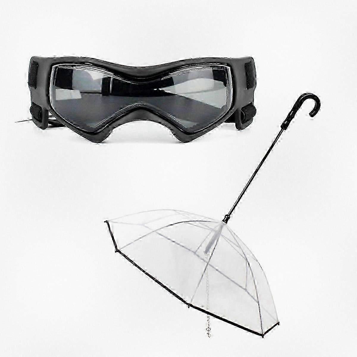 Small Pet Umbrella with Leash, Clear Rain Cover for Dogs Up to 27.5in Back Length, Includes Protective Pet Glasses