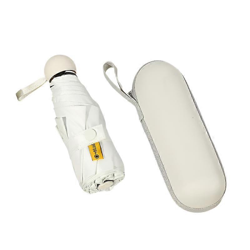 Elosung Beige Compact 5 Fold Umbrella With Uv Protection Wind Resistance Travel Friendly Design Umbrellas