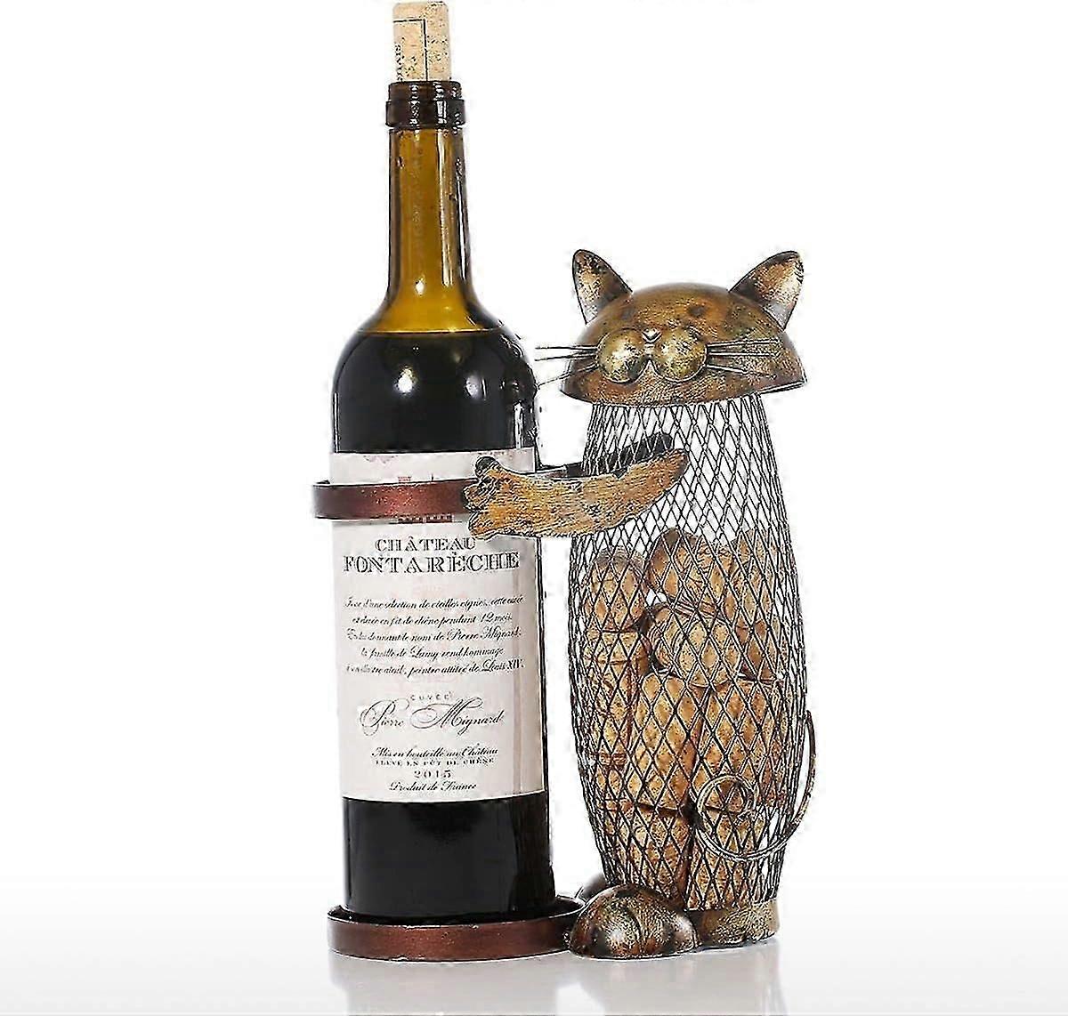Metal Cat Wine Bottle Holder Animal Statue Decorative Wine Cork Holder Kitchen Home Decor Sculptures