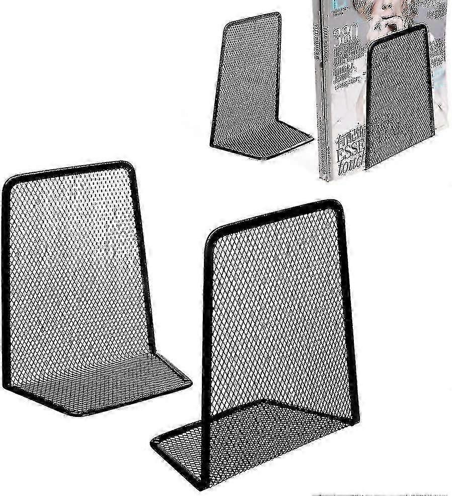 Metal L-shaped Mesh Desk Organizer Bookends For Shelves Black Book Holder Book