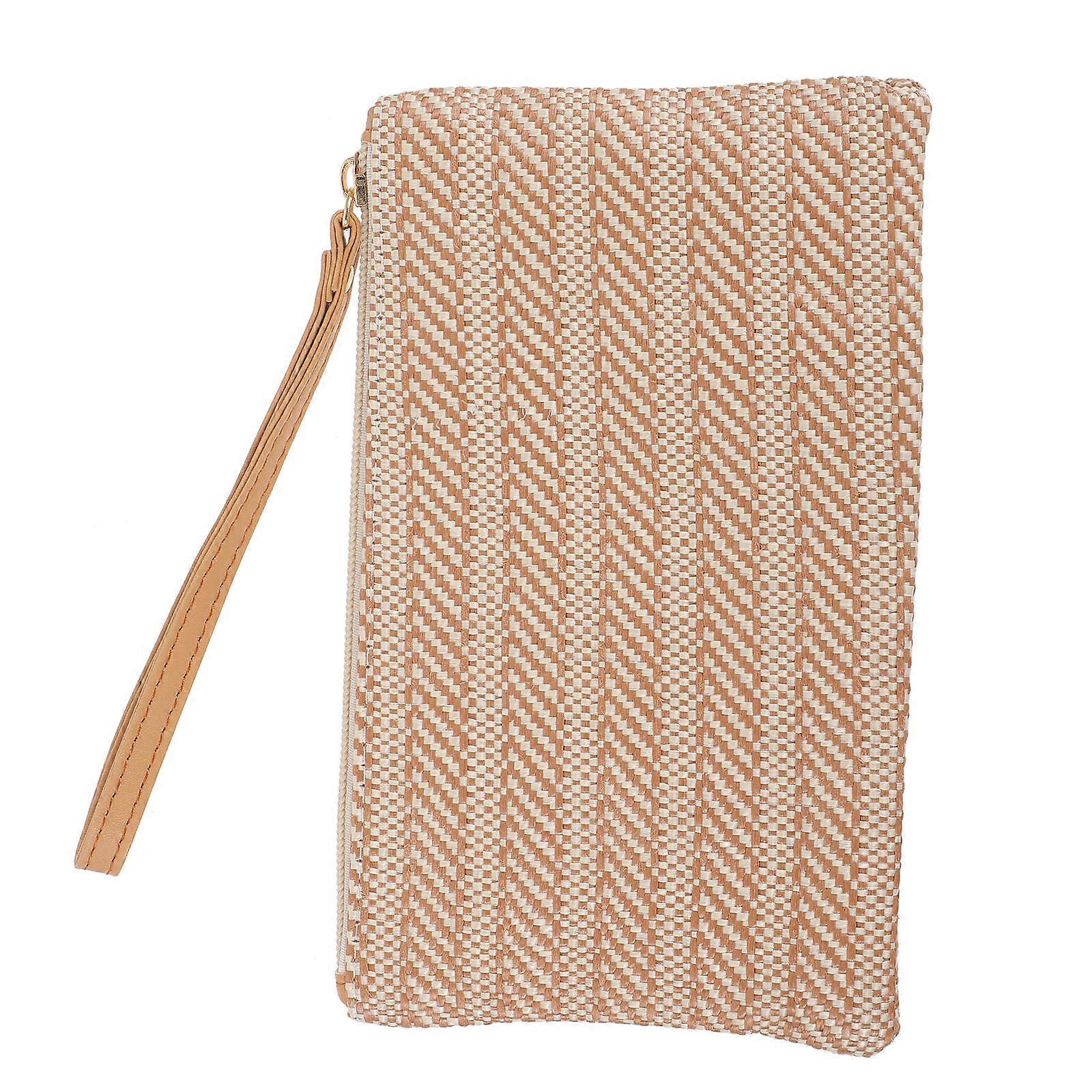 Wristlet Clutch Purse Straw Wallet for Women with Zipper Closure 3Pcs Set