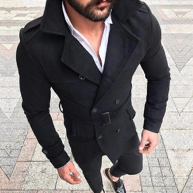 Men Business Trench Coat Overcoat Long Jacket Slim Fit Outerwear(Gift Of K)L-Black
