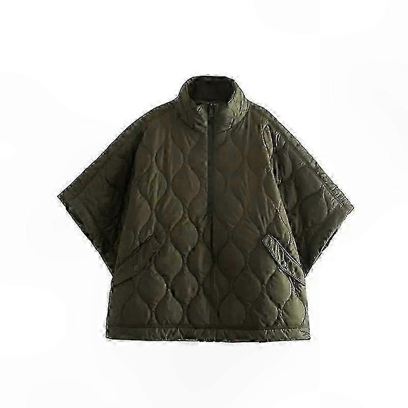 Quilted Waterproof Coat with Diamond Pattern, Long Sleeves, Stand-Up Collar for Women, Autumn/Winter Season