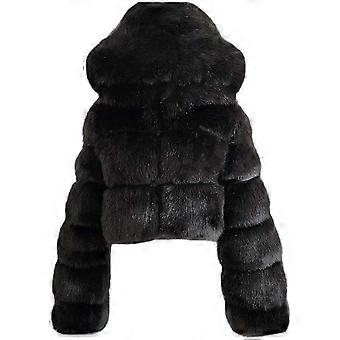 معطف نسائي من الفرو الصناعي مع قلنسوة ومعاطف قصيرة من الفقاعات من الصوف وجاكيتات دافئة قصيرة ومعاطف شتوية بمقاسات كبيرة للنساء(kui)