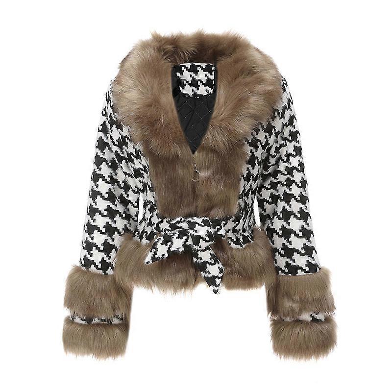 Overcoat 2023 New Fashion Imitation Fox Fur Collar Women's Woolen Coat Winter Temperament Plaid Short Women's Woolen Coat Y226