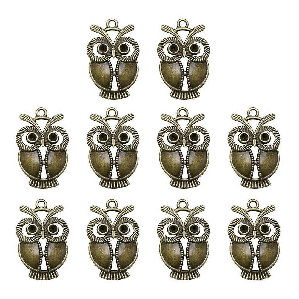 Vintage Alloy Owl Pendants for Jewelry Making DIY Charms Coffee Color 10 Pieces